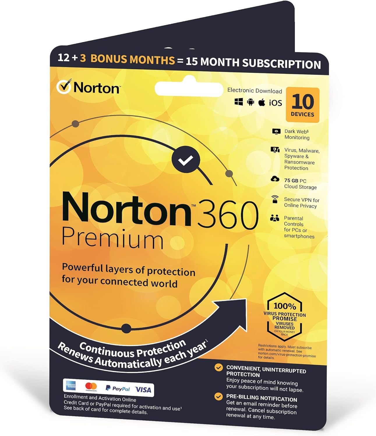 Norton 360 Premium 2024, Antivirus Software for 10 Devices and 15 Month Subscription with Automatic Renewal, Includes Secure VPN and Password Manager, PC/Mac/iOS/Android, Activation Code by email